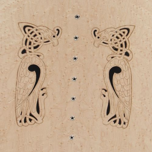 Früher gab es Harfen mit perforierten Klangdecken - wir haben diese Idee aufgegriffen und kombinieren das häufig mit der Gravur verschiedener Motive.