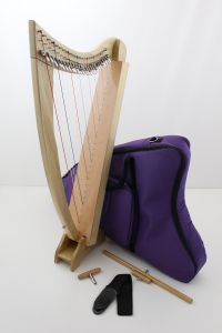 Diese kleine Harfe ist wahnsinnig praktisch, um beispielsweise zu reisen oder an Workshops teilzunehmen. Das Instrument kommt komplett in einer Transporthülle und kann entweder mit einem Gurt umgeschnallt werden oder mit einem Kniestock gespielt werden .Außerdem gibt es einen Standfuß,man könnte sie also auch zum spielen auf ein kleines Tischchen stellen.