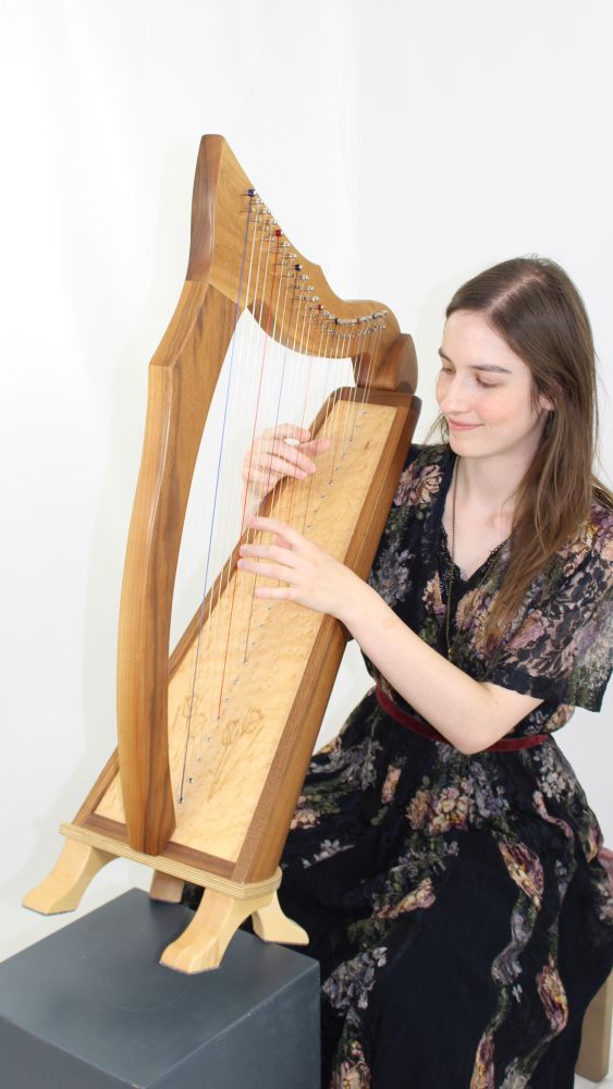 Die Amiant ist mit 24 Saiten die kleinste Harfe der Harfenmanufaktur von Bernadette Kerscher. Die Harfe für Mittelaltermärkte oder zum Kuscheln auf dem Sofa. Wir bauen diese Harfe in Kirschbaum und Nussbaum. Besaitung: Carbonsaiten. Basisversion/Basispreis OHNE Halbtonklappen. (mit Klappen ab 1530.-€ )