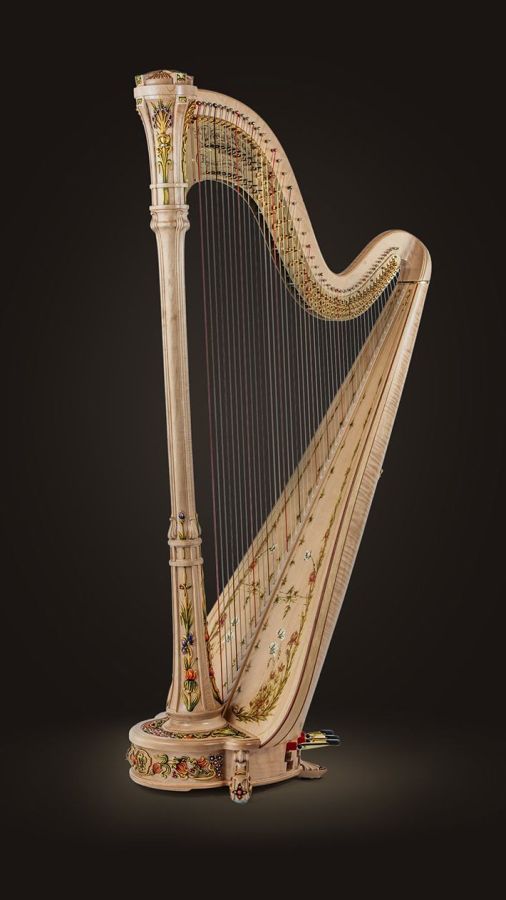 Eine romantische Harfe, im Art Nouveau Design. Weiche florale Dekoration auf der Klangdecke, handgeschnitzte Verzierungen der Ahornsäule.Bei der Style 11 Nouveau sind diese Verzierungen zusätzlich von Hand bemalt. Wunderschöner Klang, ausgewogen, reich und klar. .