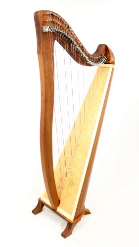 Die 34-saitigen Instrumente sind von der Größe her sehr gut für junge Harfenanfänger geeignet. Meist lassen sie sich über Schraubfüße oder Sockel dann an die wachsende Körpergröße anpassen. Die 34 Saiten sind völlig ausreichend, um 99% der Literatur für Hakenharfe zu spielen.