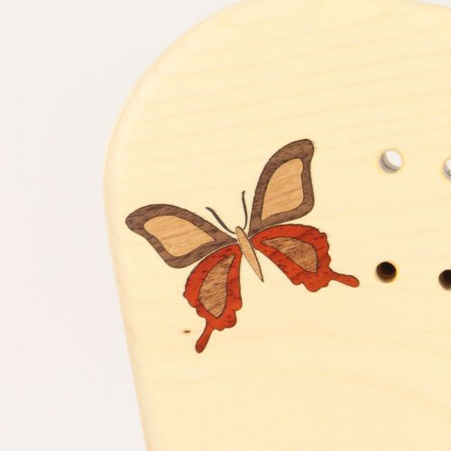 Auch als Holzintarsie im Hals ist ein Schmetterling wunderschön.