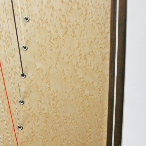 Eine elegante schlichte Verzierung sind Zierleisten in den Randleisten der Harfe - in Holz oder Perlmutt.