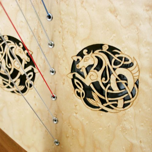 Früher gab es Harfen mit perforierten Klangdecken - wir haben diese Idee aufgegriffen und kombinieren das häufig mit der Gravur verschiedener Motive.